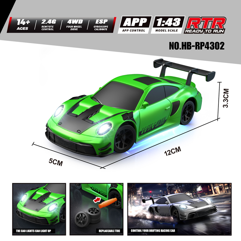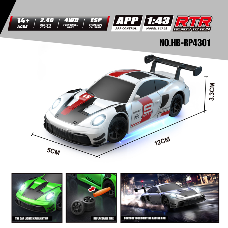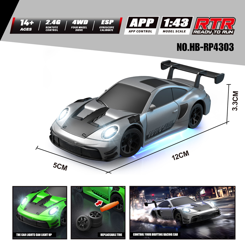 Description: 1/43 Full-scale RC Drift Car 2.4G&APP Control 4WD Speed Rally Racer with Drift High-speed Wheels