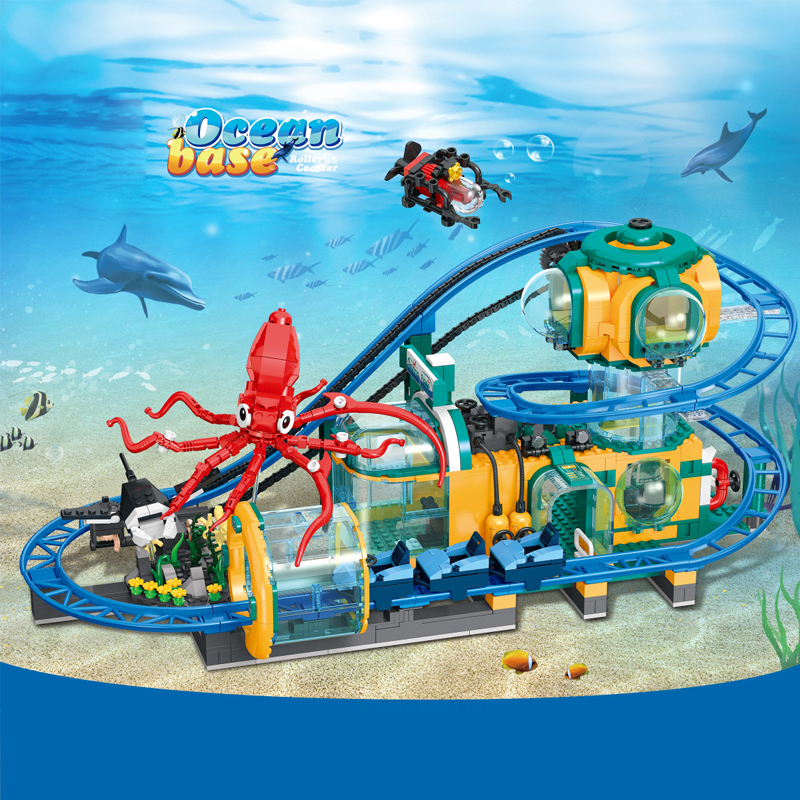 Description: Electric Ocean Base Roller Coaster Building Blocks Undersea Ocean Roller Coaster Adventure with Sea Animals