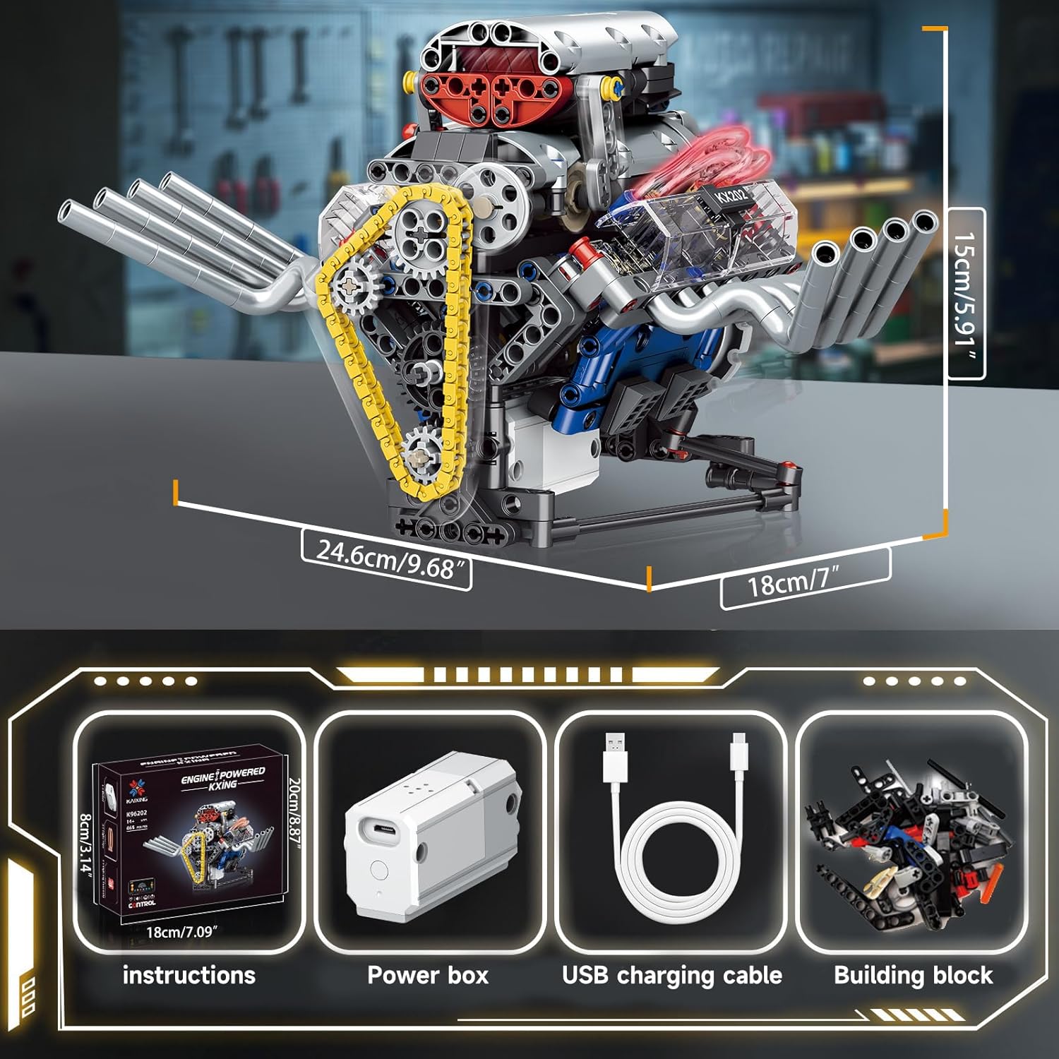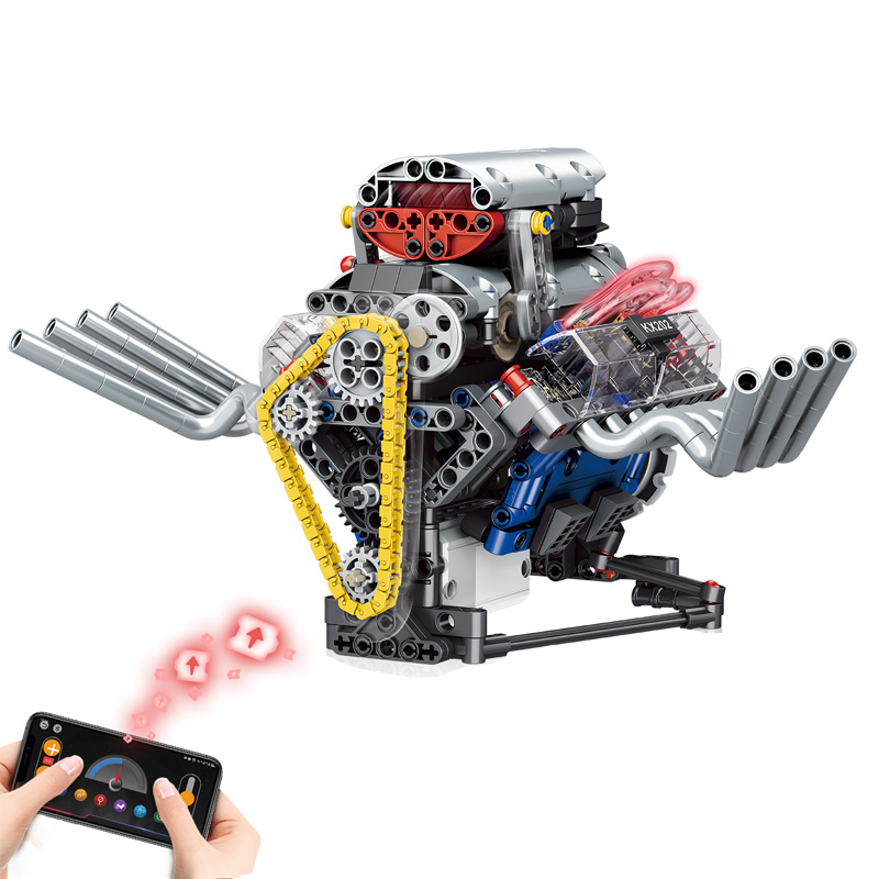 Description: Hellcat V8 Engine APP Control Electric Model Building Blocks DIY Assembly Engine Powered Educational Toys