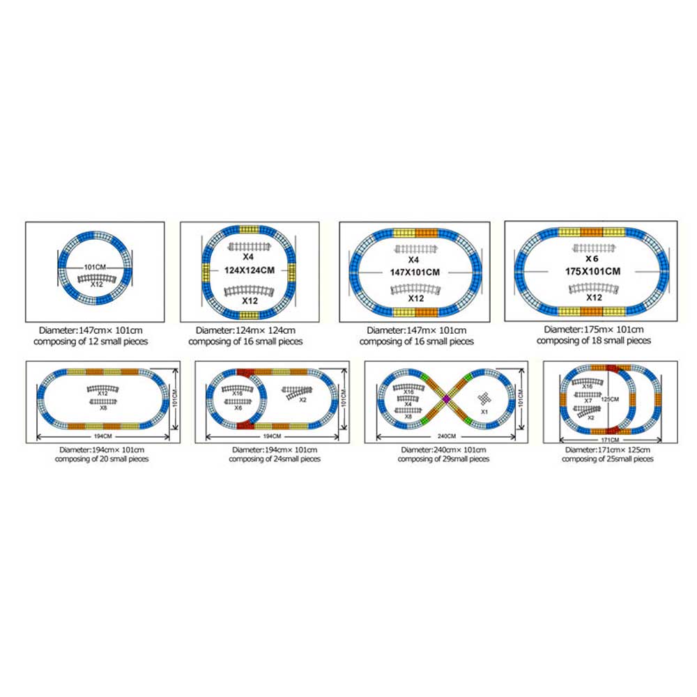 Description: 1:87 Battery Train Track Toy Electric Train DIY Kids Assemble Flexible Track Toy Set with Lights&Sounds