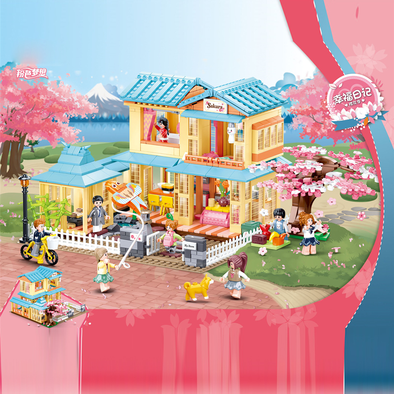 Description: Japanese Guesthouse Building Blocks Girls Dream Happy Diary House Bricks DIY Assembly Educational Toy