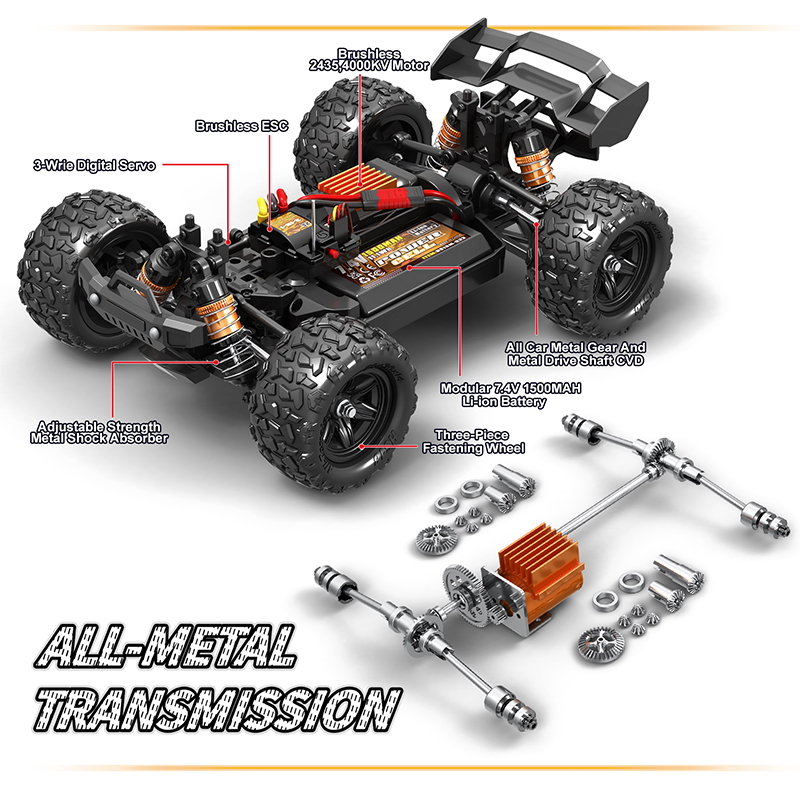 1. Standard equipment includes a complete set of metal gears, front and rear metal differential gears, metal central drive shaft, metal wheel drive shaft, and metal wheel axles.