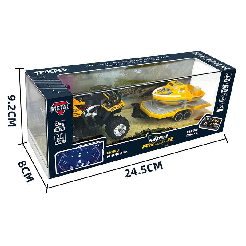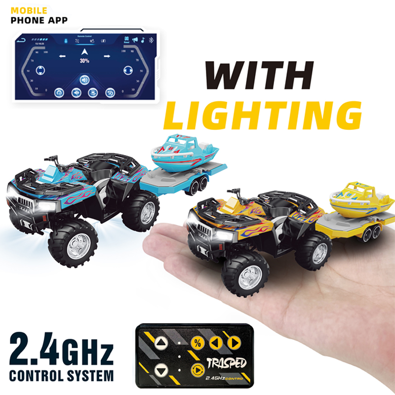 Description: 1/64 2.4G&APP RC Metal Beach Off-road Motorcycle Boat Trailer With Lights