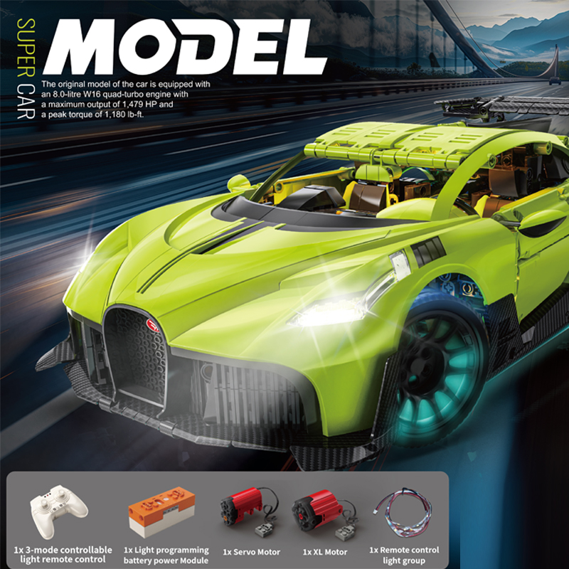 Description: 2.4G&APP RC Super Car DIY Assembly Set 1/8 Racing Sport Car Building Blocks With Lights