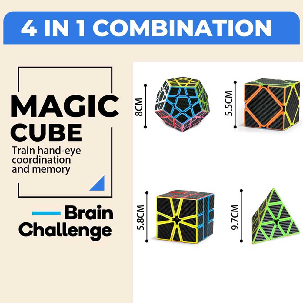 Description: 4pcs Carbon Fiber Resistant Frosted Magic Cube Multi Shape Magic Cube Game Toys Educational Toy For Kids