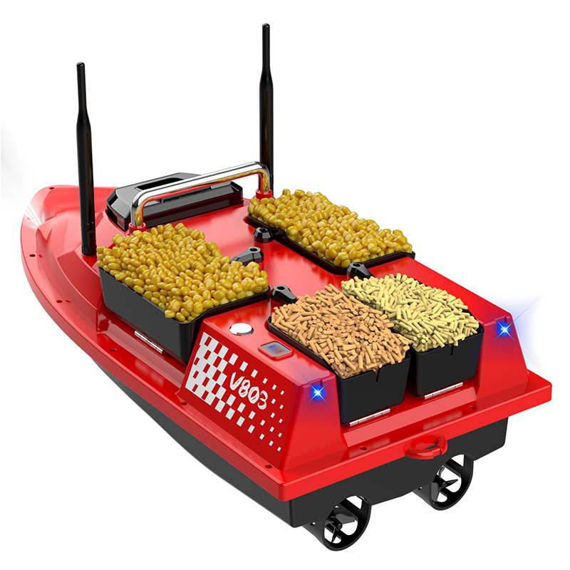 Description: V803 Four Hoppers Dual Antenna Hook Attach & Fishing Line Sending Smart RC Bait Boat for Fishing