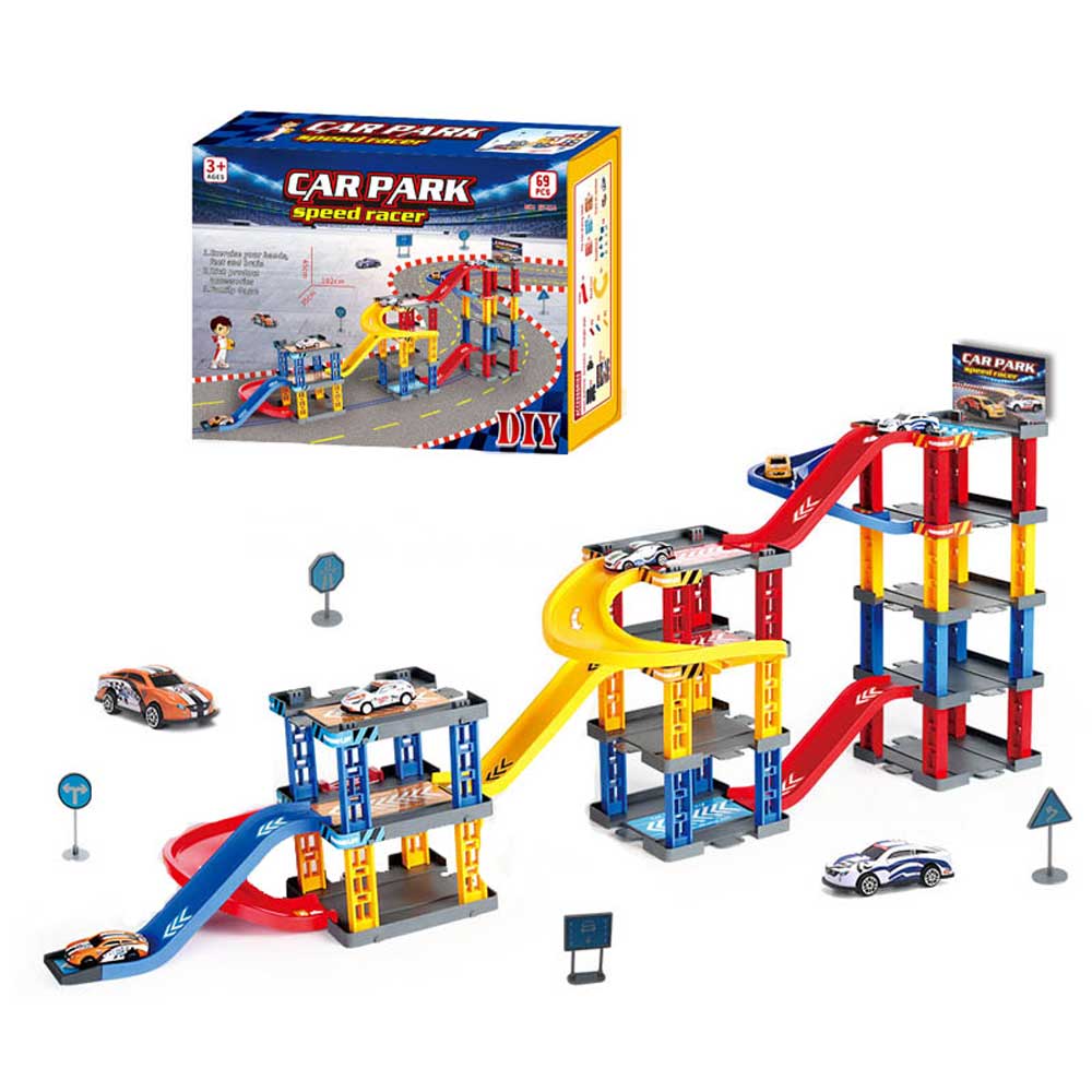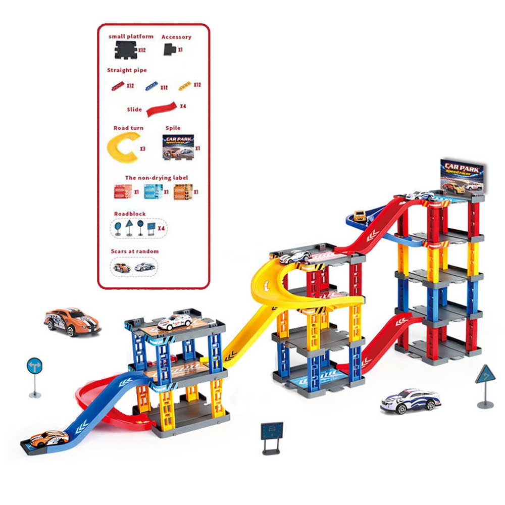 Description: City Metal Car Parking Set Lot Toy DIY Speed Car Parking Station with 5pcs Alloy Car