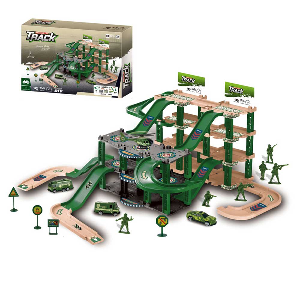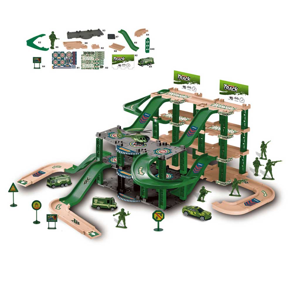 Description: Military Center Parking Lot Playset Set DIY Simulation Military Model Parking Lot Toys(95pcs)