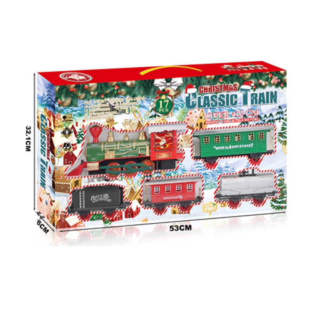 Description: B/O 17pcs Electric Christmas Small Train Assembled Rail Car Lights&Sounds Set Track Toy