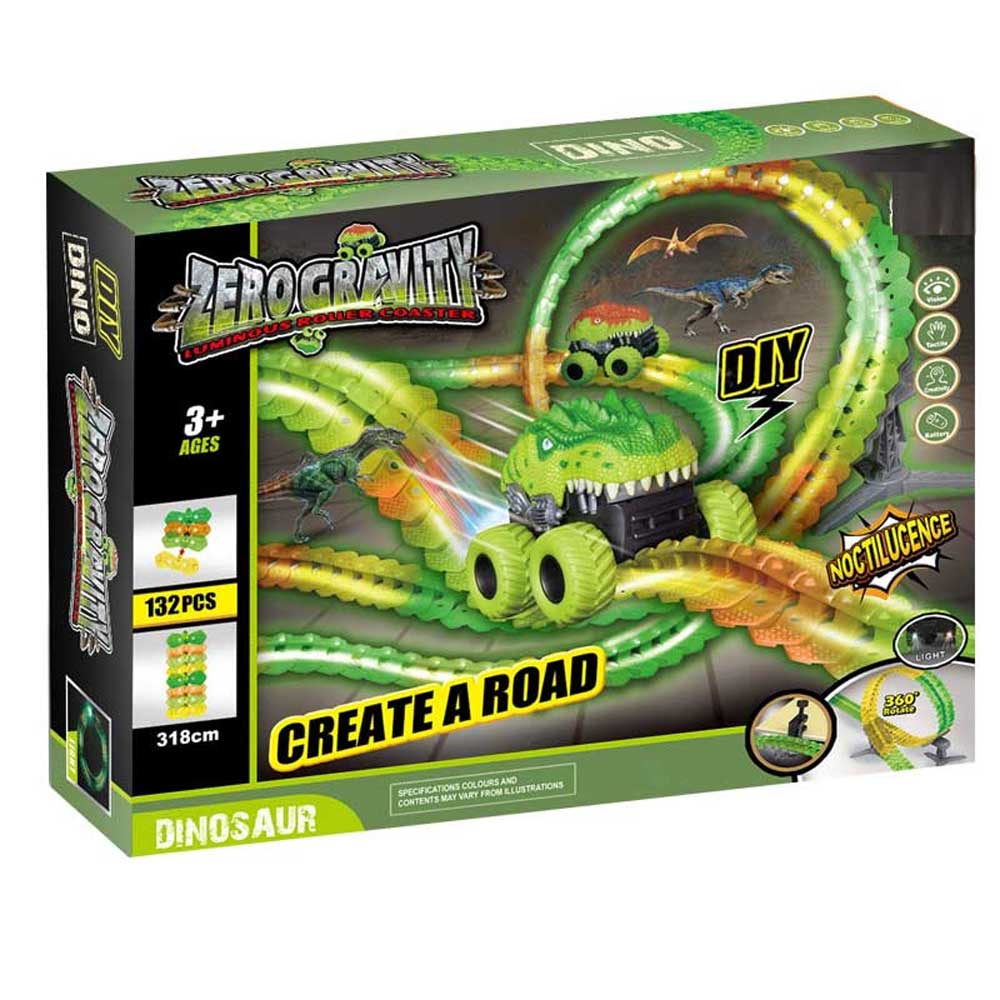 Description: Dinosaur Track Zero Gravity Race Car Flexible Assembly Railway Vehicles Slot Toy Set For Kids